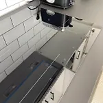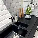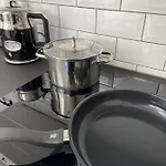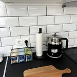 Vattenkokare, mikrovågsugn och kaffe/tebryggare finns också tillgängliga.